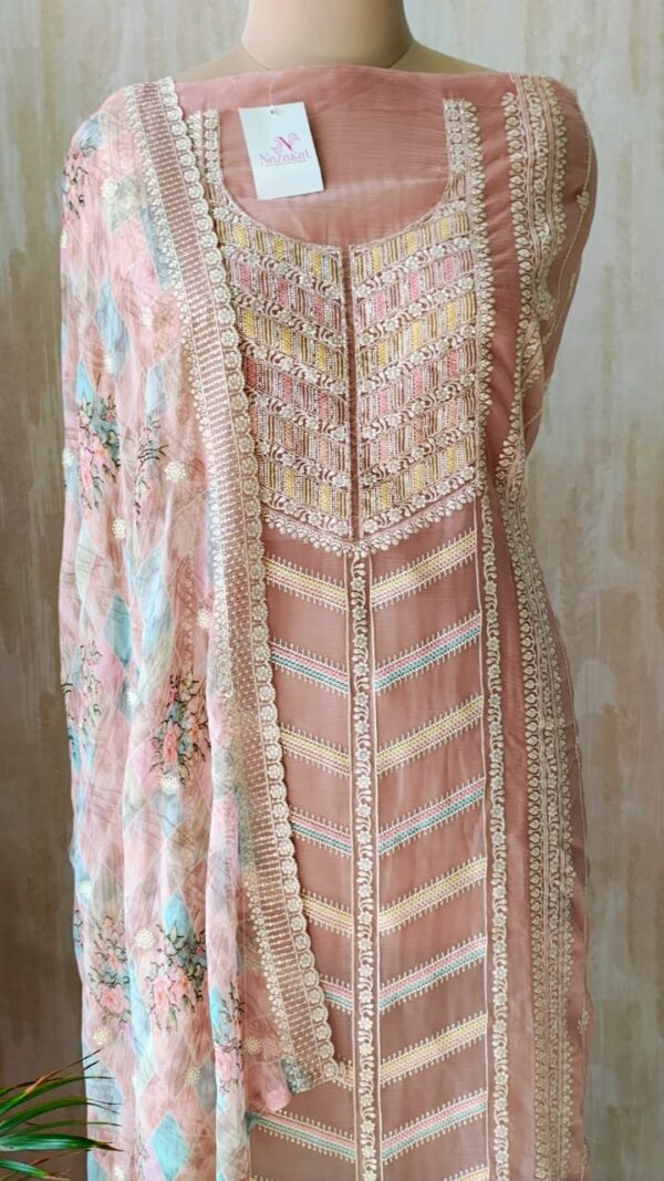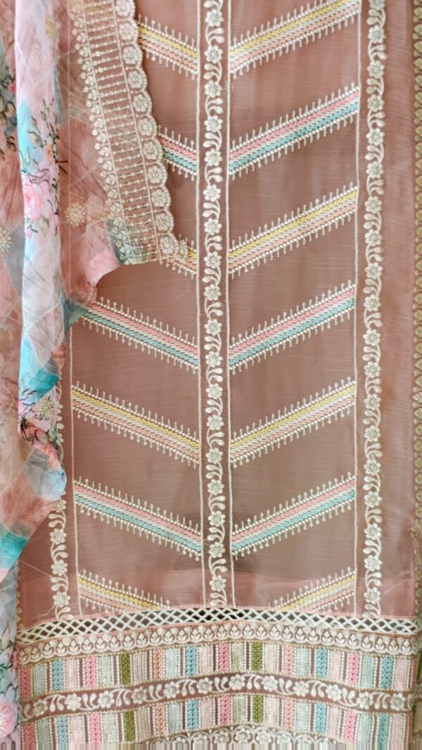 Shimmer tissue Unstitched suit with beautiful sequence and nalki work done on all over suit