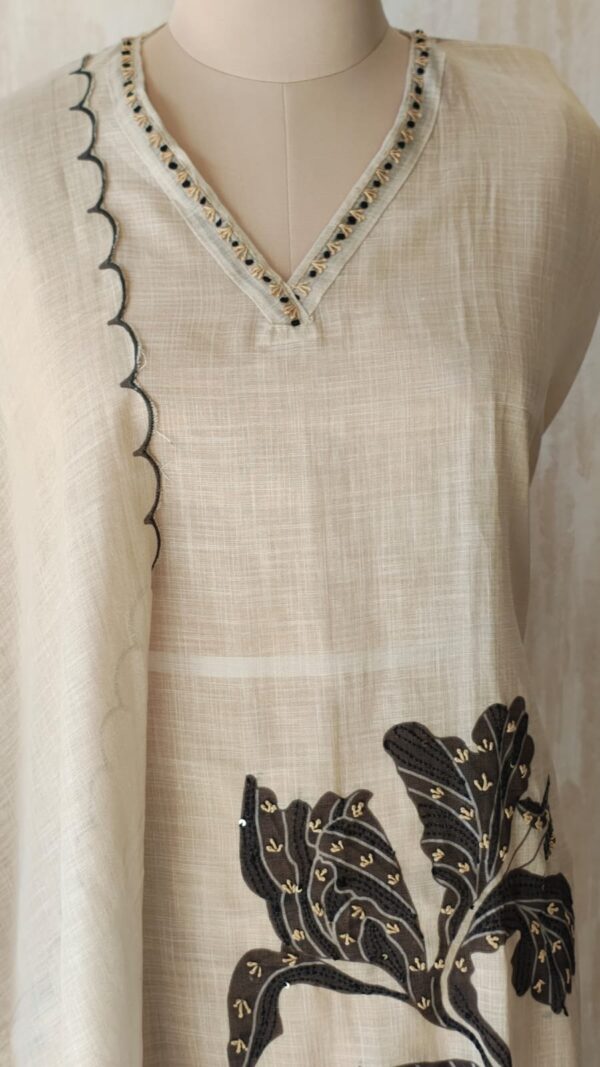 Matching jamdhani cotton dupptta with kantha stitch work and scalloped borde